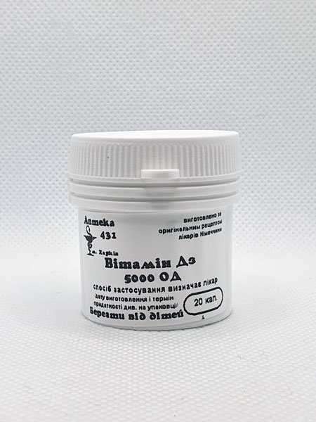 - вітамін Д3 5000 Од відноситься до рупи жиророзчинних вітамінів. Необхідний для нормального функціонування імунної системи, паращитовидних залоз, кишечнику, нирок, зміцнює опорно-рухову систему, сприяє підтримці зубів у нормальному стані, сприятливо впливає на стан шкіри та волосся.
