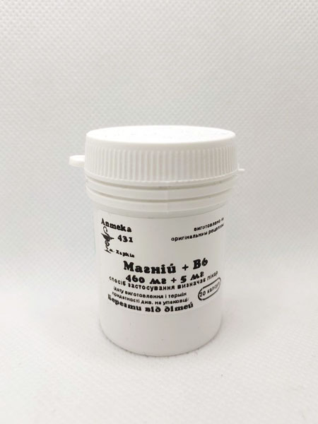 Показання до застосування: у складі комплексної терапії з метою нормалізації функціонального стану нервової системи при незбалансованому харчуванні або підвищеній потребі в магнії та вітаміні В6 при негативному впливі довкілля, надмірних фізичних та психічних навантаженнях, при підвищеній втомлюваності, порушенні сну, дратівливості, підвищеній збудливості, тривожності, м’язових судомах, відчутті поколювання у м’язах.