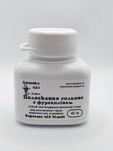 - фурацилін 0,02% - сильний антисептик, активно впливає на грампозитивні і грамнегативні мікроорганізми: стафілококи, стрептококи, кишкову паличку і т.д. Фурацилін, проникаючи всередину мікробної клітини, гальмує ділення клітини і викликає її загибель;